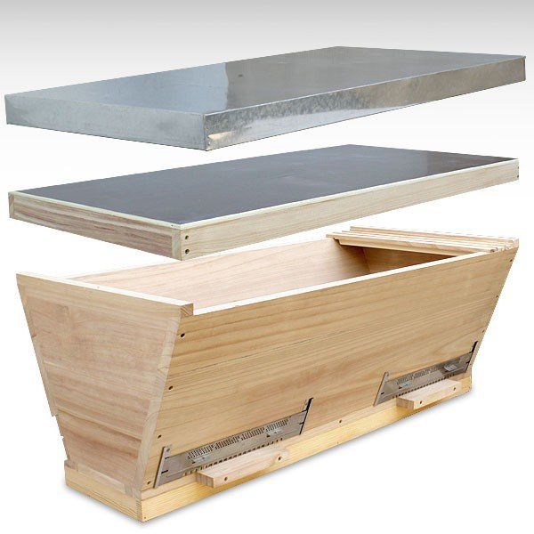 Aşağıdaki fotoğraflar bir Oekobeute TBH'yi göstermektedir. İlk olarak, hava dolu boşlukla yalıtılan ve çatıdaki yarıklar aracılığıyla hava değişimine izin veren ahşap çatılı dış görünüm. Daha sonra TBH üst destekler ve dolgu şeritleri ile kapatıldı. Tavan gövdeye menteşelerle tutturulmuştur ve bu nedenle açılabilmektedir.