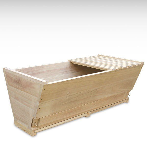 TBH, peteklerin yatay yönde geliştiği oluk şeklinde bir kovandır. Başlangıçta Afrika'daki kalkınma yardımı için tasarlandı ve bu nedenle bazen Kenyalı Üst Çubuk Kovanı olarak da adlandırılıyor. Konsept son derece basittir ve üst kısmı şeritlerle kapatılmış küçük bir oluktan (örneğin içi boş bir yarım gövde) oluşur. Arılar peteklerini bu üst desteklerin üzerine kurarlar ve bunlar daha sonra çıkarılabilir. Üst kirişler yaklaşık 30 ila 35 mm genişliğindedir; bu, etkilenmemiş doğal petek yapısında petek merkezinden petek merkezine olan mesafeye karşılık gelir.